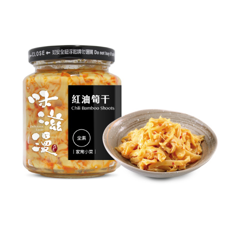 主要成分:發酵筍、大豆油、蔗糖、食鹽、調味劑(L麩酸鈉、檸檬酸、5'-次黃嘌呤核苷磷酸二鈉、5'-鳥嘌呤核苷磷酸二鈉、胺基乙酸、DL-胺基丙酸、乳酸)、芝麻油、辣椒粉、油性辣椒紅(辣椒紅、精緻葵花油)、油性辣椒抽出物(辣椒、脂肪酸甘油酯、大豆油)